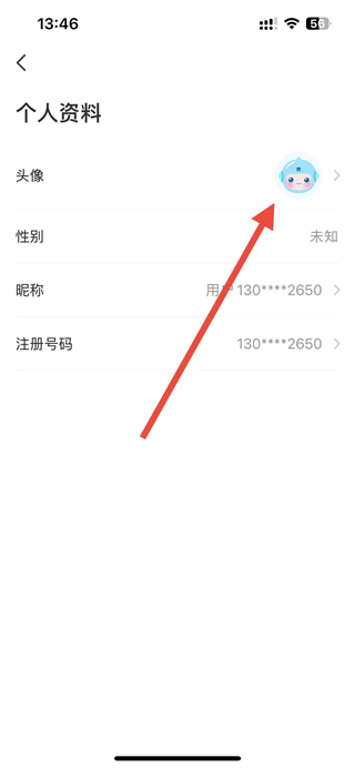 2、在“我的”頁面點(diǎn)擊頭像區(qū)域,進(jìn)入個(gè)人資料頁面,可看到頭像、性別等信息選項(xiàng)。