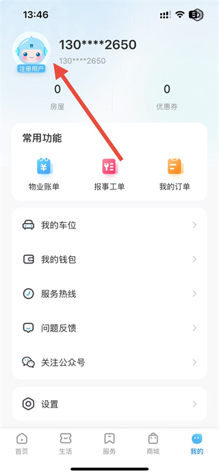 1、點(diǎn)擊底部“我的”選項(xiàng),進(jìn)入含常用功能、個(gè)人信息的頁面,可查看注冊(cè)號(hào)碼等內(nèi)容。