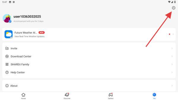 1、打開(kāi)茄子快傳APP,進(jìn)入到個(gè)人主頁(yè)內(nèi),點(diǎn)擊右上角設(shè)置的圖標(biāo)。