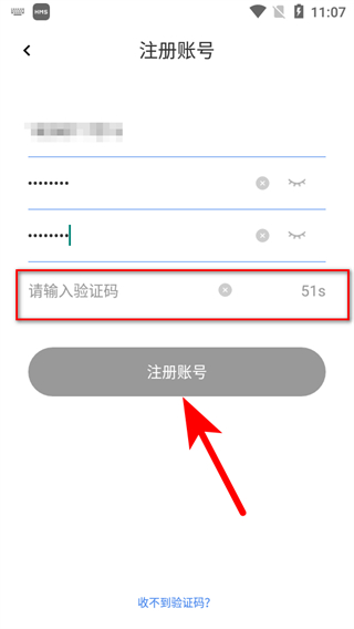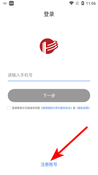 3、輸入驗(yàn)證碼后點(diǎn)擊注冊(cè)賬號(hào),完成長(zhǎng)陽停車APP賬號(hào)注冊(cè)操作。