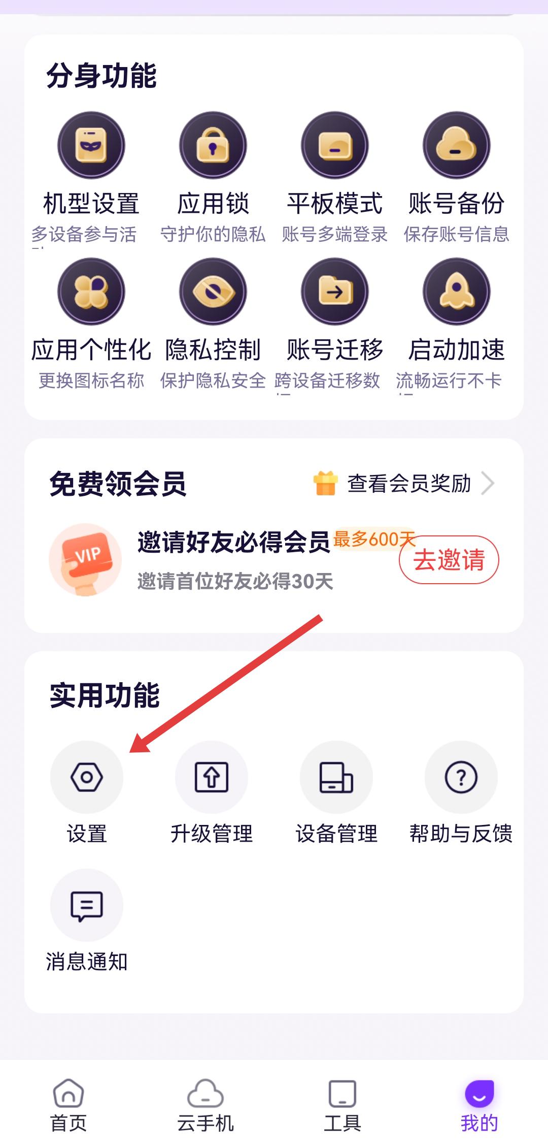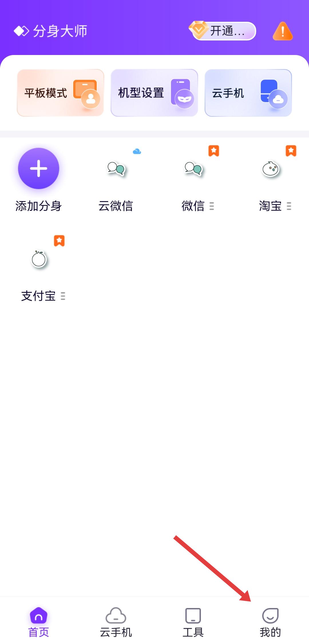 1、在分身大師主界面,點(diǎn)擊底部導(dǎo)航欄的我的選項(xiàng),進(jìn)入個(gè)人中心頁(yè)面。