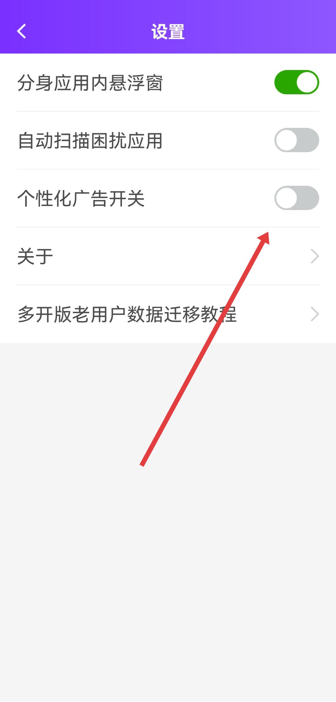 4、點(diǎn)擊個(gè)性化廣告開(kāi)關(guān)的開(kāi)關(guān)按鈕,將其切換為關(guān)閉狀態(tài),即可關(guān)閉個(gè)性化廣告。