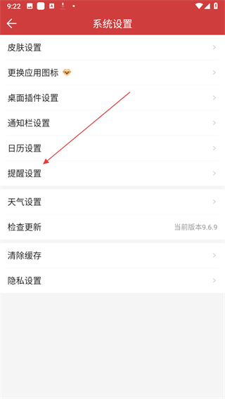 3、在系統(tǒng)設置頁面,點擊提醒設置選項,進入提醒設置界面。
