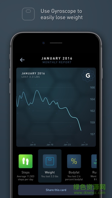 陀螺儀集成HealthKit和其他數(shù)據(jù)源來顯示你的生命完整的故事。看到美麗的日常,每周和每月的報告你的生活,并輕松地保存它們作為圖像到您的手機或分享他們在社交媒體。最近由App Store在“新的應(yīng)用程序,我們愛”!