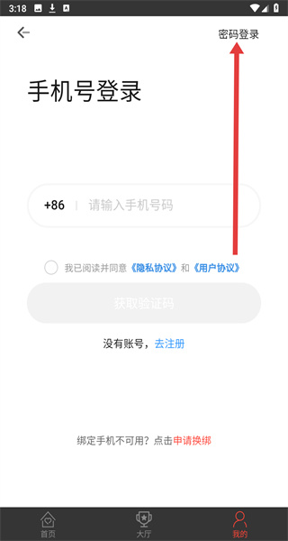 2、登錄界面點擊右上角“密碼登錄”,切換至密碼登錄方式。