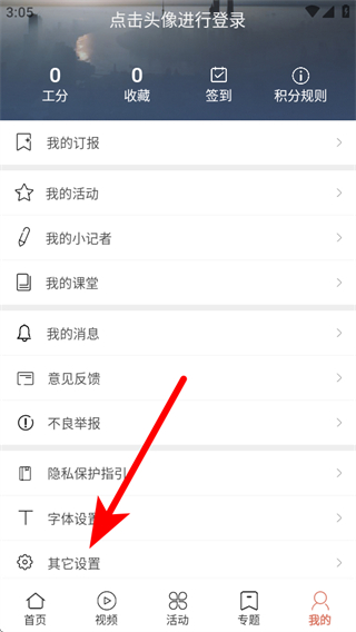2、在個人界面中,找到其它設(shè)置選項,點擊進入其他設(shè)置頁面。