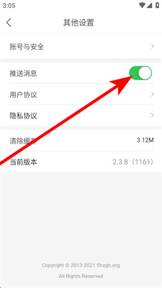 3、在其他設(shè)置頁面,找到推送消息的開關(guān),點擊關(guān)閉完成關(guān)閉操作。