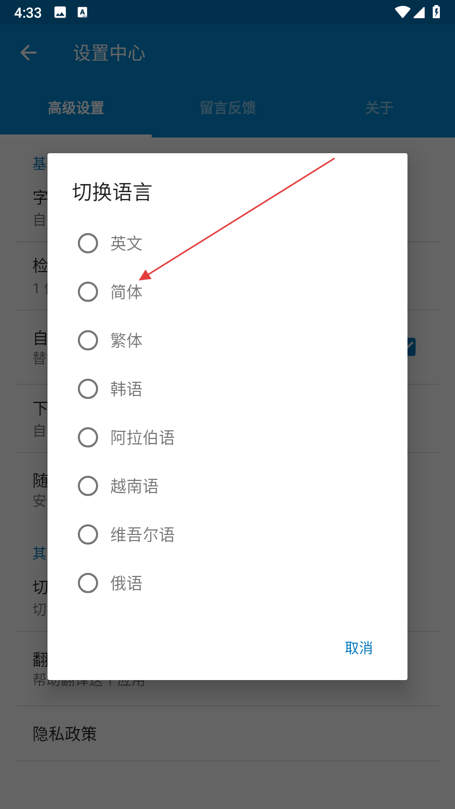 3、點擊之后會彈出語言選擇列表,選擇所需語言。