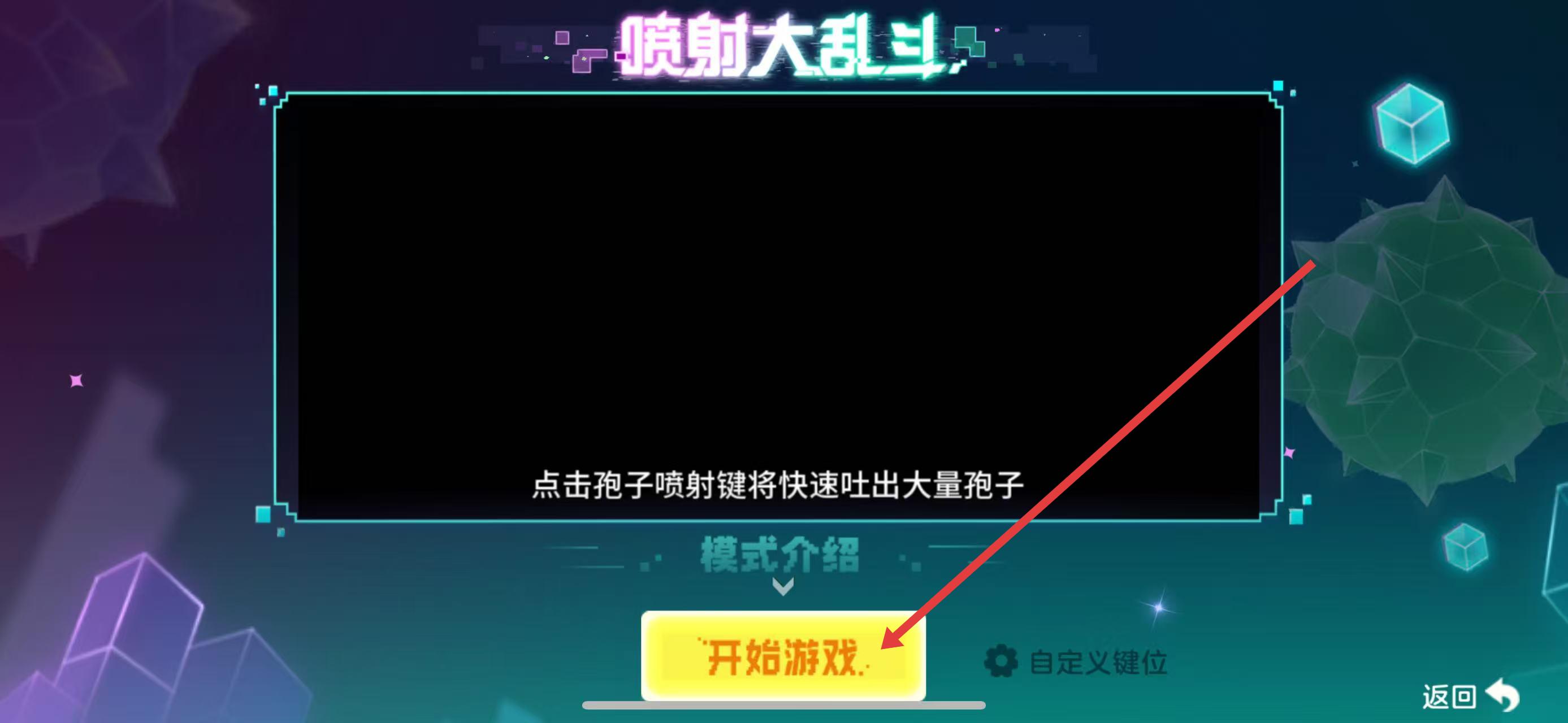 2、在噴射大亂斗準備頁面,閱讀模式介紹,了解點擊孢子噴射鍵可快速吐出大量孢子后,點擊開始游戲按鈕。