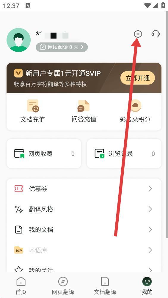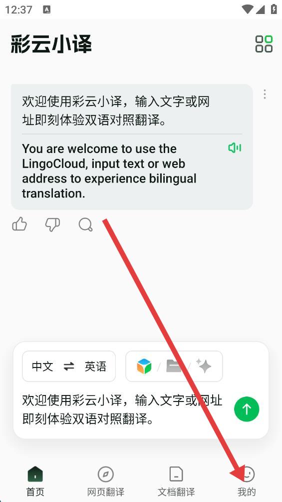1、打開彩云小譯APP,點擊底部我的。