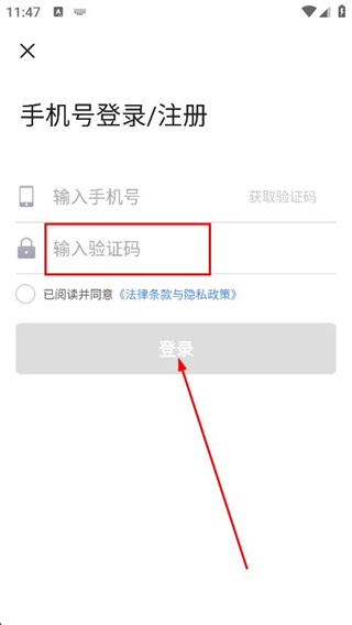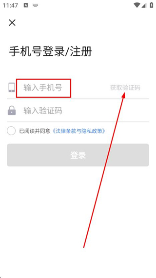 2、在手機(jī)號登錄/注冊頁面,輸入手機(jī)號,并獲取驗(yàn)證碼。