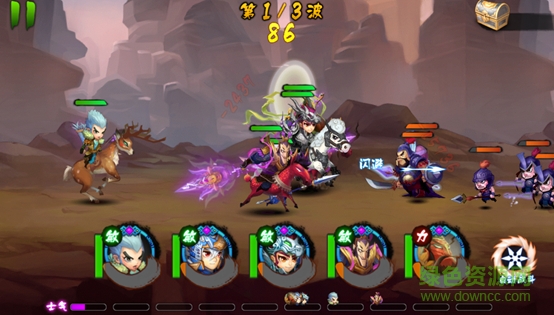 進(jìn)入戰(zhàn)斗加載畫(huà)面, “三英戰(zhàn)呂布” 的三國(guó)經(jīng)典橋段躍然圖上,仿佛帶你穿越歷史,回到漢末群雄四起的三國(guó)時(shí)代,參與亂世紛爭(zhēng),坐擁盛世江山。通過(guò)國(guó)漫畫(huà)風(fēng)表現(xiàn)手法的刻畫(huà),將劉備的城府極深、關(guān)羽的驕傲狂妄、張飛的粗獷善戰(zhàn)、呂布的自負(fù)易怒,四人的性格特征表現(xiàn)得淋漓盡致。 由此可見(jiàn),游戲制作方在美術(shù)功底以及人物形象的拿捏上實(shí)力不俗。而使用“三英戰(zhàn)呂布”的加載畫(huà)面,也表現(xiàn)出游戲遵循原著,傳達(dá)著極具激斗爽快的游戲樂(lè)趣。