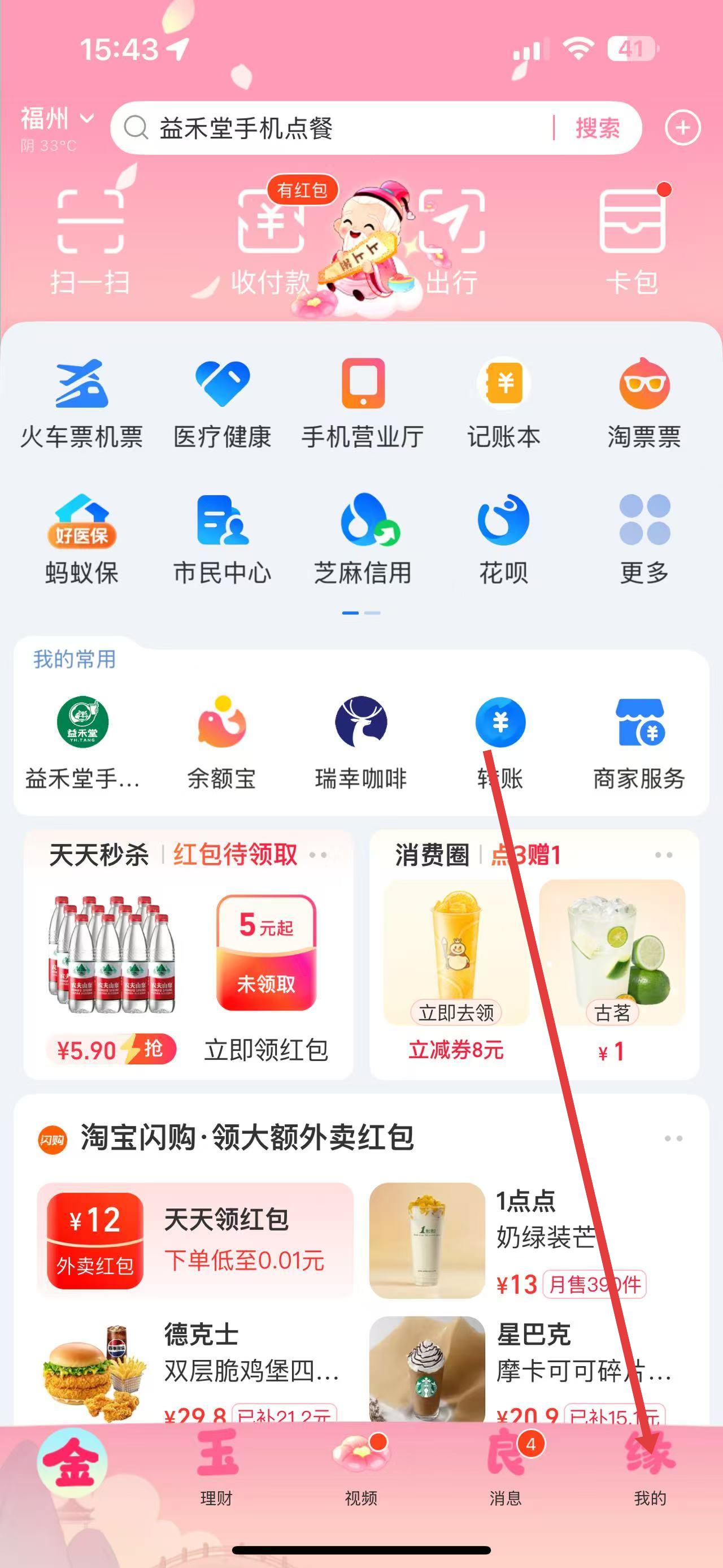 1、打開(kāi)支付寶APP,點(diǎn)擊右下角我的,進(jìn)入個(gè)人頁(yè)面。