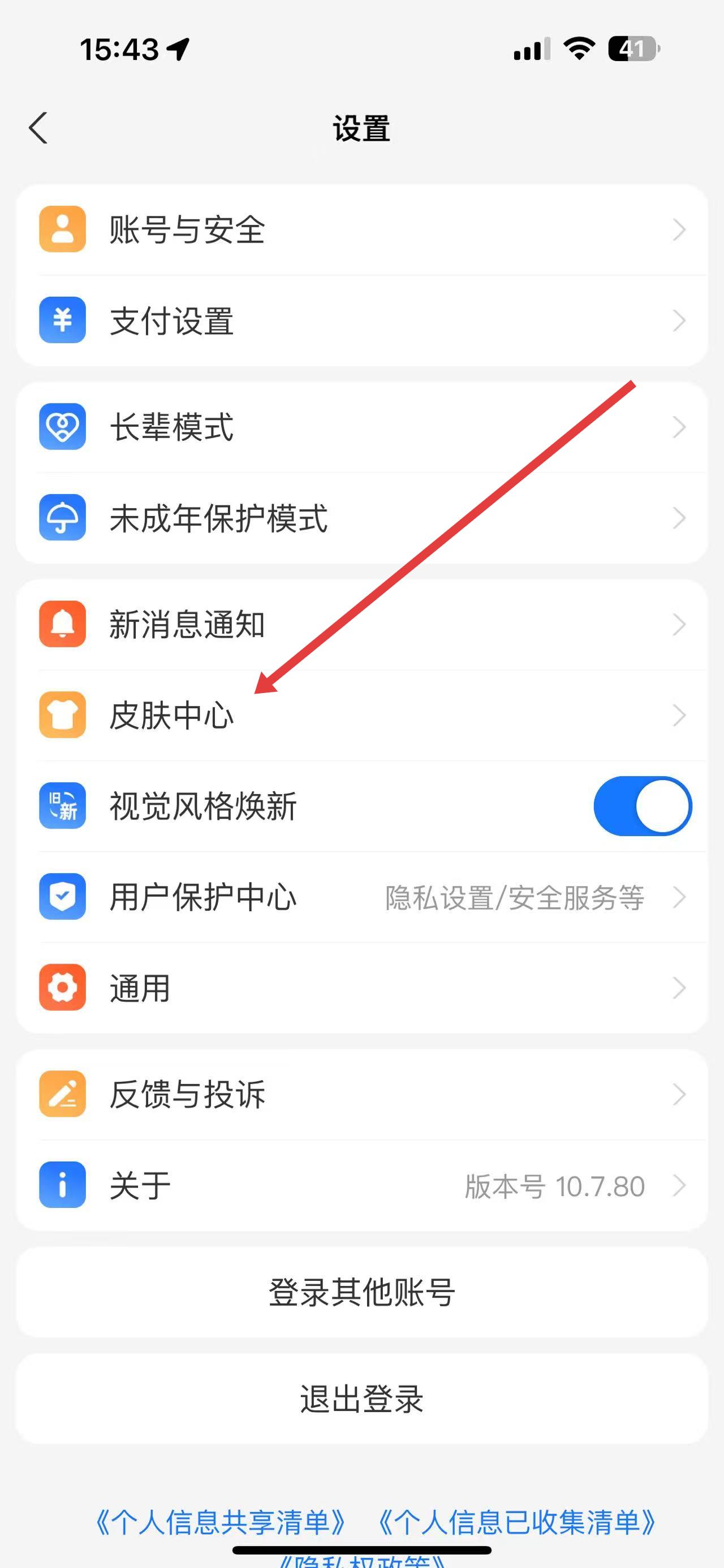 3、在設(shè)置界面中,點(diǎn)擊皮膚中心選項(xiàng),進(jìn)入皮膚選擇頁(yè)面。