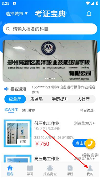 1、打開考證寶典app,點(diǎn)擊底部導(dǎo)航欄的我的選項(xiàng)。