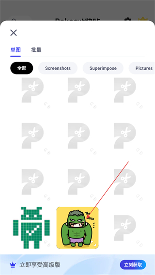 2、在彈出的圖片選擇界面,選擇單圖或批量模式,然后從相冊中找到并選中你想要編輯的圖片。
