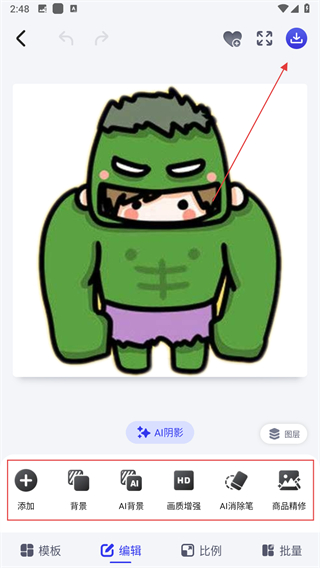 3、選中圖片后進入編輯界面,底根據(jù)需求選擇相應(yīng)工具對圖片進行處理,完成編輯后,點擊下載。
