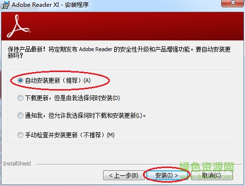 1.在綠色資源網(wǎng)下載并解壓縮,找到“AdbeRdr11000_zh_CN.exe”雙擊運行