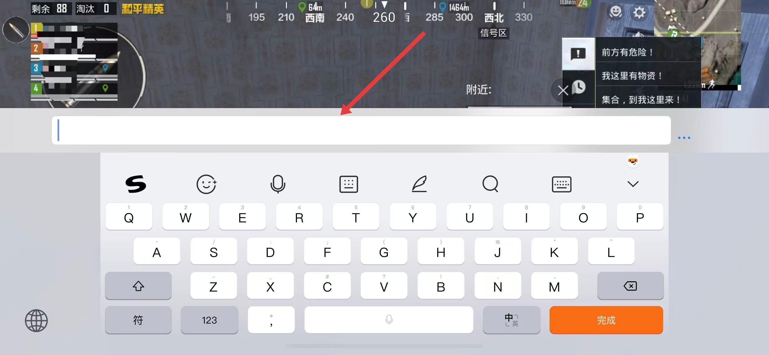 3、屏幕下方會彈出輸入法鍵盤,輸入想要發(fā)送的文字內(nèi)容,即可將信息發(fā)送給隊友。
