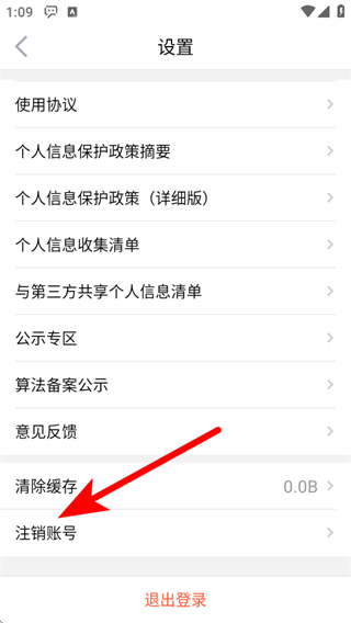 3、在設(shè)置頁面,點擊注銷賬號,進入注銷賬號選項的頁面。