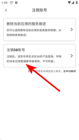 4、在注銷賬號選項頁面,點擊注銷58賬號,按流程完成注銷操作。