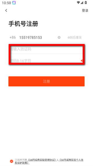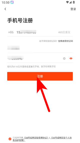 4、勾選同意協(xié)議后點擊注冊按鈕,即可完成58同城賬號注冊。