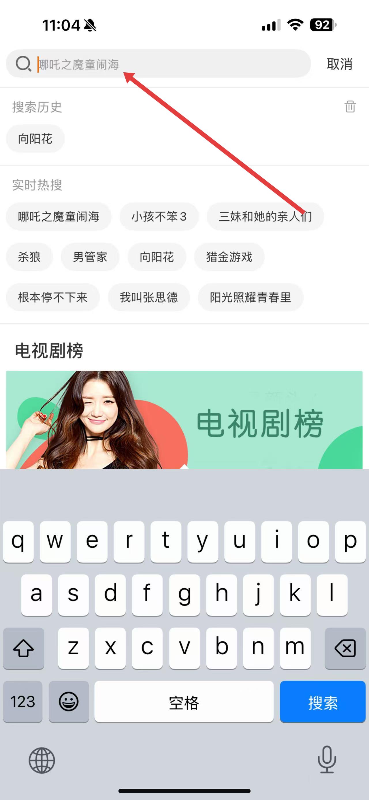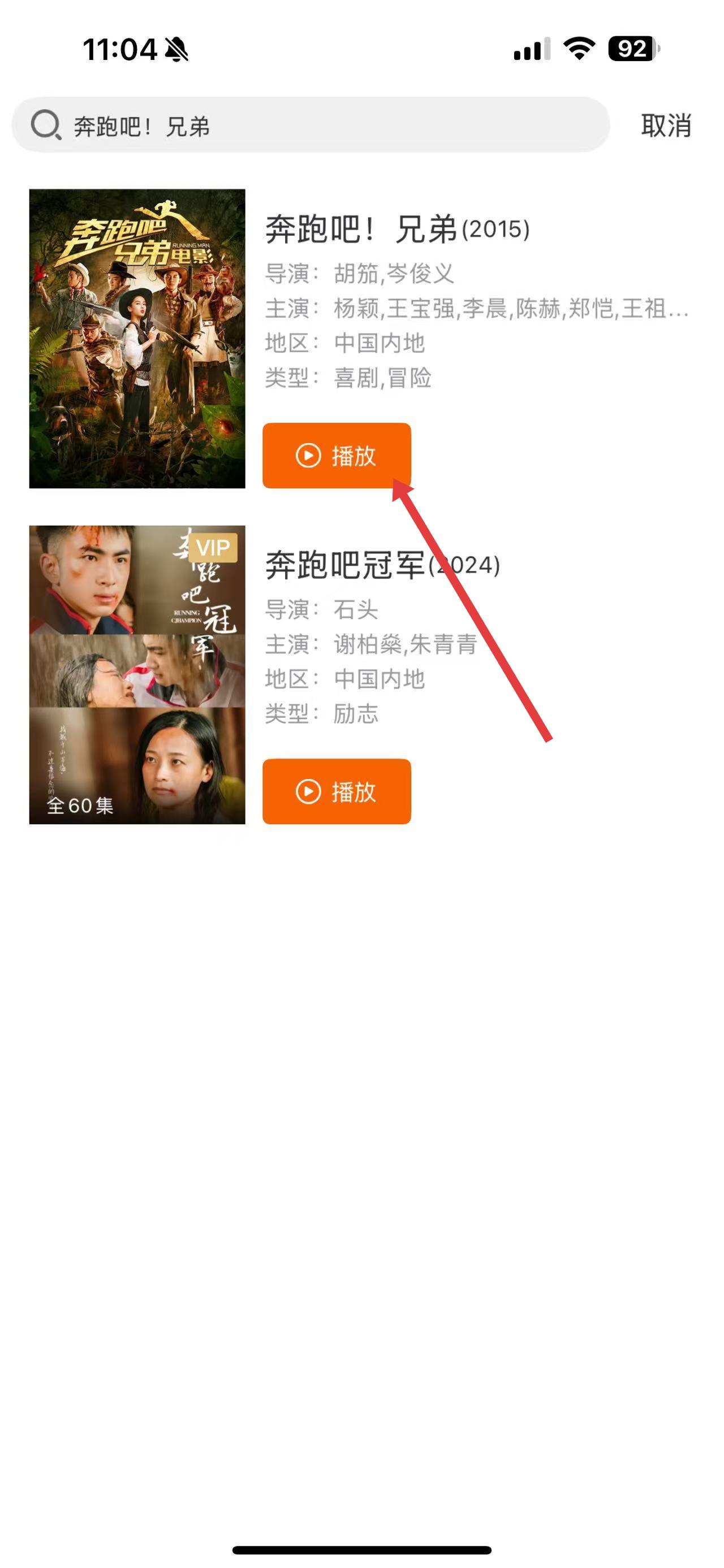 2、在搜索框中輸入想要查找的電視節(jié)目名稱,比如奔跑吧!兄弟,輸入完成后點(diǎn)擊鍵盤上的搜索按鈕。