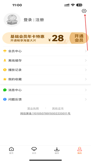 2、進(jìn)入個(gè)人中心的界面內(nèi),點(diǎn)擊右上角設(shè)置的功能按鈕。