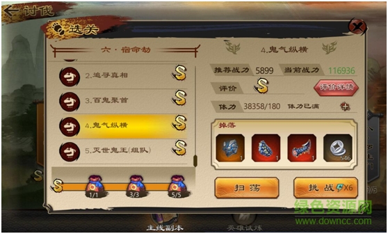 點(diǎn)擊屏幕右側(cè)討伐圖標(biāo)就可以進(jìn)入討伐玩法中,在討伐玩法中可以看到主線任務(wù)的副本,做主線任務(wù)也是玩家們升級(jí)的主要途徑,獲得S級(jí)評(píng)價(jià)就可以掃蕩副本,輕松獲得大量經(jīng)驗(yàn)和材料(不要忘記領(lǐng)取S及評(píng)價(jià)的獎(jiǎng)勵(lì)哦)。