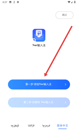 2、在進入到Nur輸入法應用后,可以點擊簡體中文按鈕設置語言。