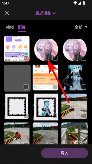 2、進(jìn)入選擇文件頁面后,選擇要添加文字的圖片或視頻并導(dǎo)入。