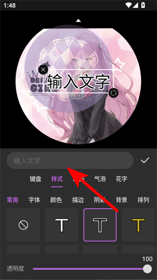 4、在文字添加界面,輸入要添加的文字,還可設(shè)置字體、顏色、描邊等樣式,完成后即可添加文字到圖片或視頻中。