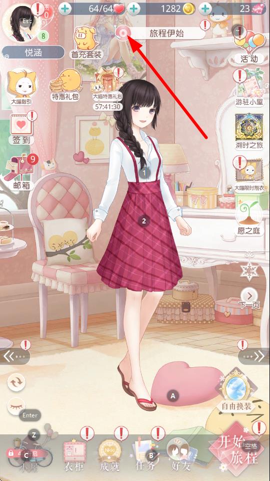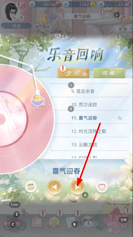 1、在奇跡暖暖游戲主界面,找到并點擊上方標(biāo)注為旅程伊始的圖標(biāo),由此進入樂音回響功能界面,開啟歌曲伴奏選擇流程。