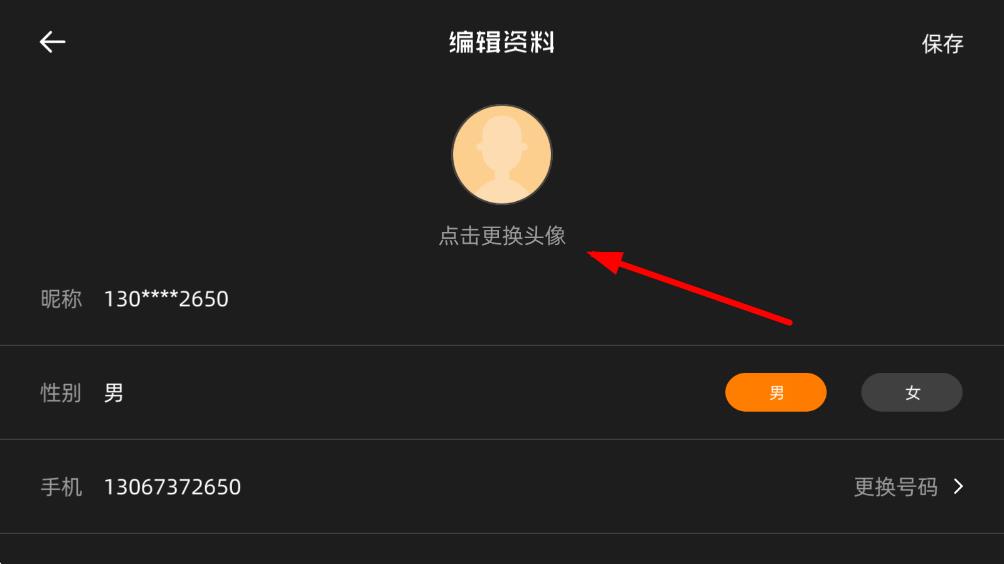 3、在編輯資料頁面,點(diǎn)擊點(diǎn)擊更換頭像,按照提示選擇并上傳新的頭像圖片。