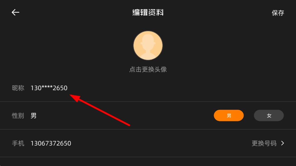4、點(diǎn)擊昵稱一欄,刪除原昵稱并輸入想要修改的新名字,完成后點(diǎn)擊頁面右上角的保存,即可成功修改名字和頭像。