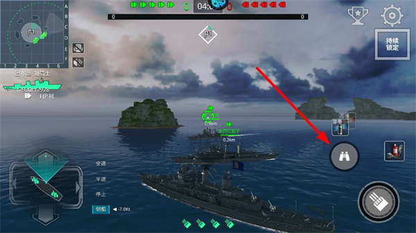 2、點擊右側(cè)望遠鏡按鈕,可放大視野,偵查遠處的敵方戰(zhàn)艦位置。