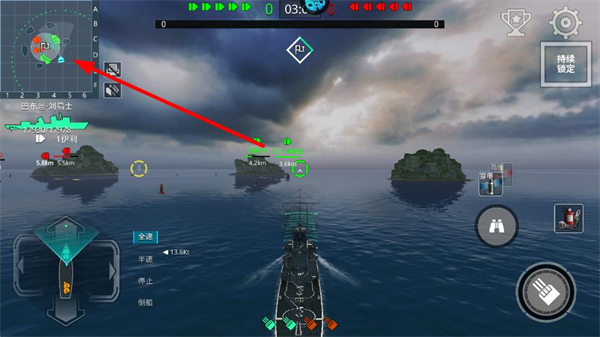 4、時刻關(guān)注左上角的地圖,通過地圖了解自身與敵方戰(zhàn)艦的位置分布,合理利用地圖信息占據(jù)海戰(zhàn)優(yōu)勢。
