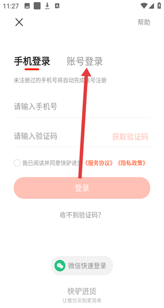 3、在登錄選擇頁(yè)面點(diǎn)擊“賬號(hào)登錄”,進(jìn)入賬號(hào)登錄頁(yè)面。