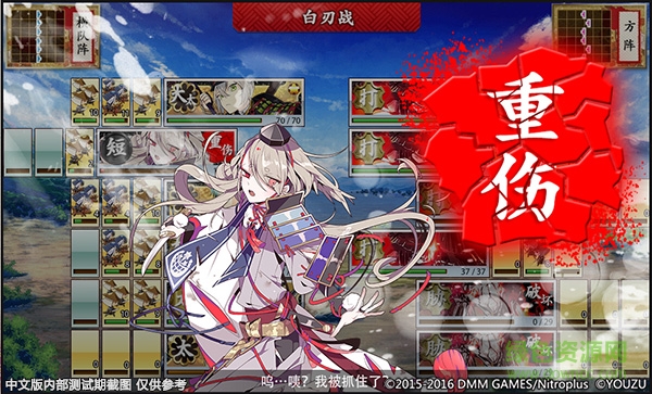 刀劍男士在戰(zhàn)斗中受到敵人攻擊就會出現(xiàn)損傷,根據(jù)受傷程度分為“輕傷”“中傷”“重傷”。