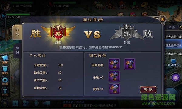 6.當(dāng)國家神獸被擊敗,則進(jìn)攻方獲得國戰(zhàn)勝利。王城內(nèi)城傳送門消失(若存在),此時(shí)仍在內(nèi)城的角色將傳回各自國戰(zhàn)復(fù)活點(diǎn),同時(shí)復(fù)活規(guī)則切換為正常狀態(tài)(國戰(zhàn)復(fù)活點(diǎn)失效)。