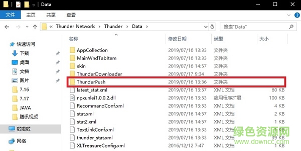 1.進入迅雷極速版安裝目錄下的【Data】文件夾,先看是否存在【Thunderpush】文件夾,有的話將其刪除,然后再新建一個【ThunderPush】文件夾(注意是文件夾),若不存在該文件夾,那直接新建一個【ThunderPush】文件夾即可。