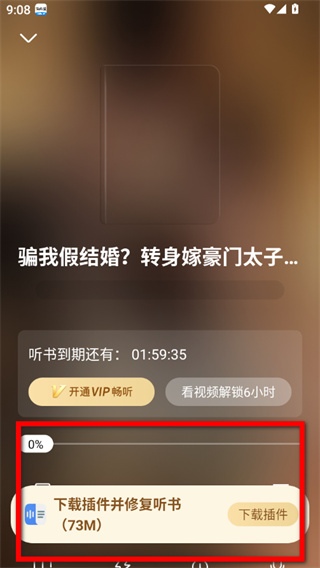 3、在聽書準備頁面,點擊下載插件按鈕,完成聽書插件的下載與安裝。