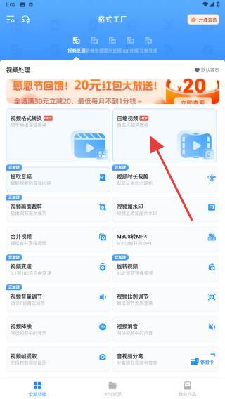 1、打開格式工廠,在首頁功能列表中找到壓縮視頻選項,點擊進入。