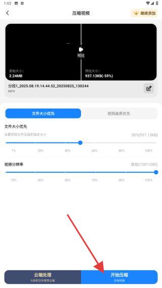 3、在壓縮視頻設(shè)置頁面,可通過以下方式調(diào)整參數(shù)、平衡體積與畫質(zhì),調(diào)整好后點擊開始壓縮。