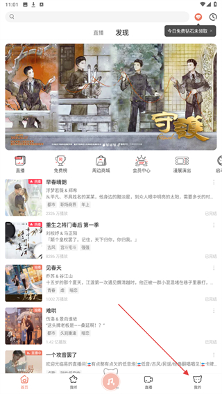 1、打開貓耳fm的APP,進(jìn)入首頁點擊右下我的圖標(biāo)。