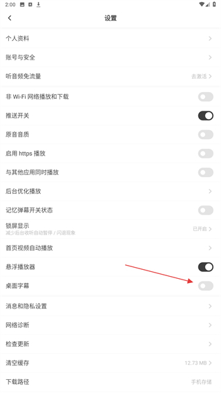3、進(jìn)入設(shè)置的頁面內(nèi),找到桌面字幕并開啟右側(cè)的按鈕。