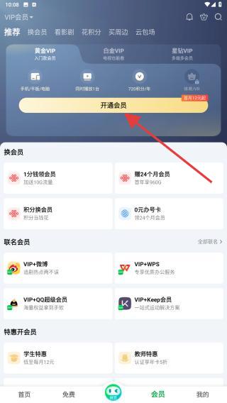 2、在會員的頁面中,用戶需點擊開通會員的按鈕。