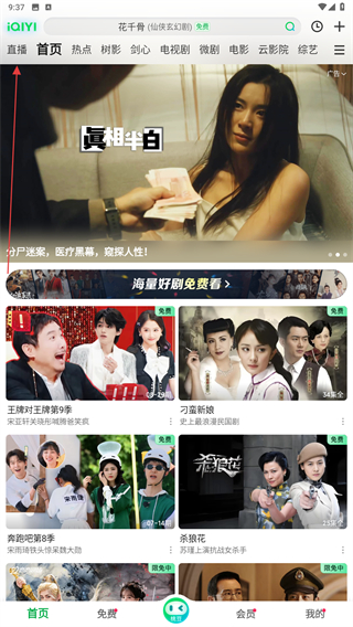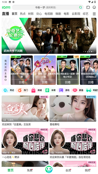 1、打開愛奇藝的APP,點擊首頁左側(cè)直播的標簽。