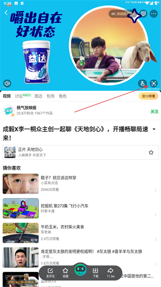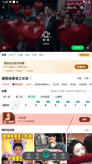 3、進入視頻播放的頁面內(nèi),點擊下方下載的功能按鈕。
