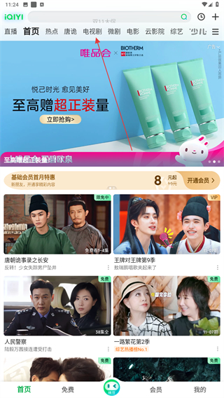 1、打開愛奇藝的應用,點擊首頁上方電視劇的標簽。